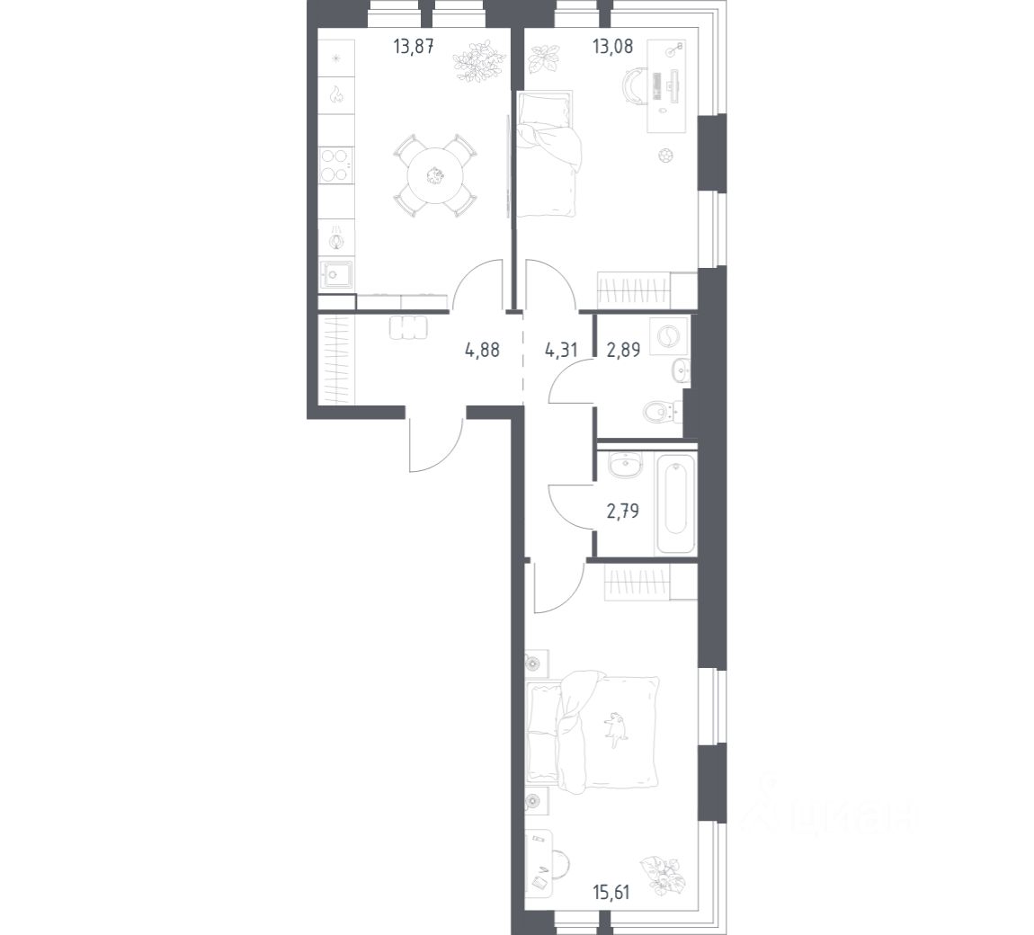 Строим кварталы для жизни с заботой о будущем. Предлагается 2-комнатная квартира комфорт-класса площадью 57,43 кв.м в корпусе 2 на 11-м этаже, в жилом комплексе ''Квартал Авиаторов''. Квартиры комплекса — на выбор: могут быть как с отделкой, так и без. В случае с готовой отделкой в комнатах и прихожей уже будут обои, натяжные потолки и ламинат, а в санузлах — керамогранит на полу и керамическая плитка на стенах. Мы подведем все коммуникации и установим сантехнику. Помимо базовой отделки, вы можете дополнительно выбрать улучшенную версию. В ней используются износостойкие материалы, ударопрочные плинтуса, ламинат с фаской — все для долговечного использования. Приобрести квартиру возможно по специальным акциям от застройщика, с текущими условиями акций можно ознакомиться в блоке ''Акций''. Цена динамическая и может отличаться, уточняйте актуальность у застройщика. ''Квартал Авиаторов'' — жилой комплекс комфорт-класса, расположенный в 2 км от железнодорожной станции Балашиха (5 минут на автомобиле, 30 минут пешком). Поблизости — Горенский лесопарк и заповедник ''Лосиный остров''. В проекте предусмотрены закрытые дворы с детскими и спортивными площадками, безбарьерная среда.