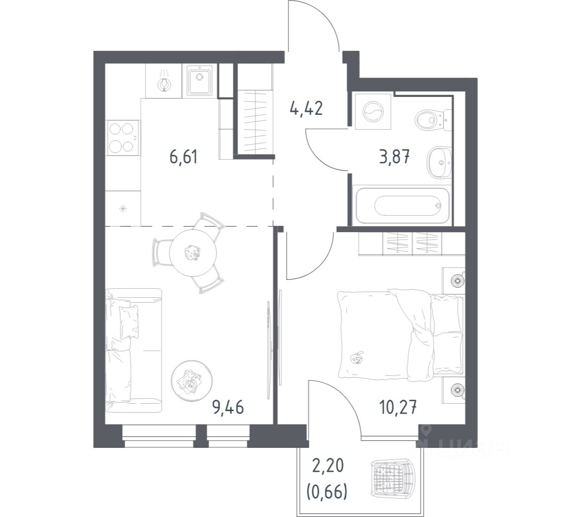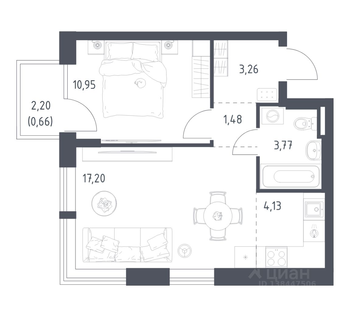 1-к, Квартал Авиаторов ЖК, 2