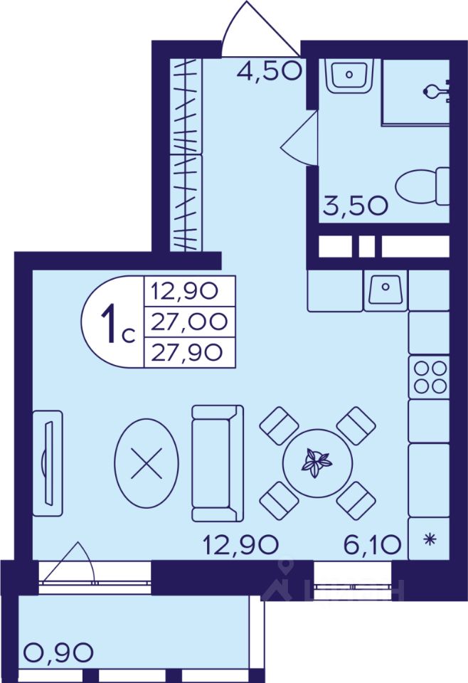 27 м² · Этаж 21 из 22