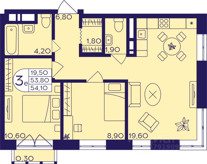 54 м² · Этаж 4 из 22