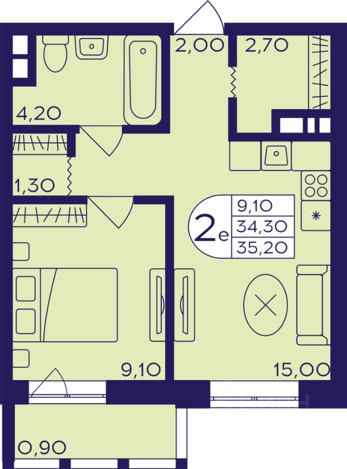 34 м² · Этаж 9 из 22