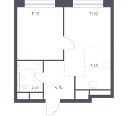 В продаже 1-комнатная квартира в корпусе 8 ЖК 'Квартал Авиаторов'. Квартира располагается на 12 этаже, общая площадь 37.3 м2.