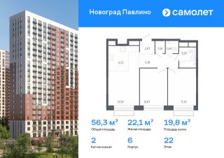 Предлагается 2-комнатная квартира комфорт-класса 54,61 кв.м в корпусе 6 на 22 этаже, в ЖК ''Новоград Павлино''Квартира с предчистовой отделкой. Доступность дополнительных опций уточняйте у застройщика.Приобрести квартиру возможно по специальным акциям от застройщика, с текущими условиями акций можно ознакомиться в блоке Акций.Цена динамическая и может отличаться, уточняйте актуальность у застройщика.''Новоград Павлино'' находится в 13 км от МКАД рядом с рекой Пехорка и в окружении трех лесопарков - Павлинского, Салтыковского и Ольгинского. Современные монолитно-кирпичные дома с широким выбором квартир. В жилом комплексе представлены разные планировки европейского формата с высотой потолков 2,8 м.
