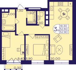 Продаётся 3-комнатная квартира в строящемся доме (Корпус 410), срок сдачи: I-кв. 2027, общей площадью 52.9 кв.м., на 4 этаже. ЖК ''Героев'' возводится в центре г.о. Балашиха, в мкрн Железнодорожный. Проект представляет собой 4 квартала монолитно-кирпичных домов комфорт-класса. Предлагаются студии, 1-, 2- и 3-комнатные квартиры с готовой отделкой, планировки - евро и классика. На территории построят детские сады и школы. В центральной части застройки оборудуют зоны для спорта и командных спортивных игр, велодорожки, детские игровые площадки и сквер с местами для отдыха. На первых этажах жилых корпусов будут магазины, банки, кафе и другие предприятия сферы услуг и торговли. Возле домов организуют авто- и велопарковки. В пешей доступности находится обширная зелёная зона - Ольгинский лесопарк, а также обжитые районы с развитой инфраструктурой, где работают детские сады и гимназии, поликлиники и ТЦ, школа искусств, спорткомплекс. Рядом с комплексом находится несколько остановок общественного транспорта. До метро ''Некрасовка'' можно добраться за 20 мин. на автобусе. В 5-7 минутах езды на маршрутке или в 15-20 минутах ходьбы располагается ст. Железнодорожная, путь со станции до Курского вокзала занимает 25 минут на ''Спутнике''. Кроме того, планируется запуск МЦД-4 от Железнодорожного до Апрелевки с переходами на метро и МЦК. На автомобиле до Москвы можно доехать за полчаса по Носовихинскому или Косинскому шоссе.
