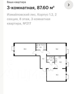 Вашему вниманию предлагается светлая 3х комнатная квартира на 12 этаже 17 этажного дома 2007 года постройки. Общая площадь квартиры 86 метров ( с учетом лоджии), комнаты изолированные 19,1/12,6/13,7 метров соответственно , кухня -столовая 13,4 метров с шикарным видом из окна, есть небольшая , но уютная гостинная с камином, просторный коридор с встроенной системой хранения, санузел совмещенный в плитке. Квартира в отличном состоянии. Новым владельцам остается практически вся мебель. Вариант заезжай и живи! Территория дома огорожена! Во дворе есть детская площадка. Рядом с домом спортивная площадка. Отличная транспортная доступность. До мцд 4 Железнодорожная 12 минут пешком. Инфраструктура района хорошо развита , в шаговой доступности продуктовые магазины , школы, детские сады, стоматология, банк. Свободная продажа Полная стоимость в договоре. Один взрослый собственник. Без обременений и долгов ! Показы по договоренности!