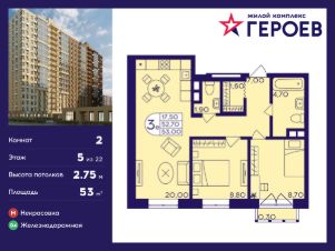 Продаётся 3-комнатная квартира в строящемся доме (Корпус 410), срок сдачи: I-кв. 2027, общей площадью 53 кв.м., на 16 этаже. ЖК ''Героев'' возводится в центре г.о. Балашиха, в мкрн Железнодорожный. Проект представляет собой 4 квартала монолитно-кирпичных домов комфорт-класса. Предлагаются студии, 1-, 2- и 3-комнатные квартиры с готовой отделкой, планировки - евро и классика. На территории построят детские сады и школы. В центральной части застройки оборудуют зоны для спорта и командных спортивных игр, велодорожки, детские игровые площадки и сквер с местами для отдыха. На первых этажах жилых корпусов будут магазины, банки, кафе и другие предприятия сферы услуг и торговли. Возле домов организуют авто- и велопарковки. В пешей доступности находится обширная зелёная зона - Ольгинский лесопарк, а также обжитые районы с развитой инфраструктурой, где работают детские сады и гимназии, поликлиники и ТЦ, школа искусств, спорткомплекс. Рядом с комплексом находится несколько остановок общественного транспорта. До метро ''Некрасовка'' можно добраться за 20 мин. на автобусе. В 5-7 минутах езды на маршрутке или в 15-20 минутах ходьбы располагается ст. Железнодорожная, путь со станции до Курского вокзала занимает 25 минут на ''Спутнике''. Кроме того, планируется запуск МЦД-4 от Железнодорожного до Апрелевки с переходами на метро и МЦК. На автомобиле до Москвы можно доехать за полчаса по Носовихинскому или Косинскому шоссе.