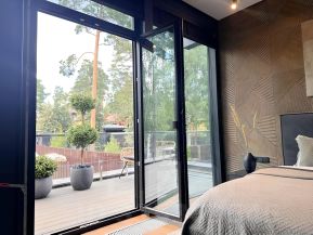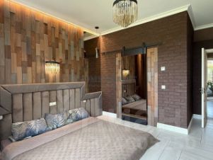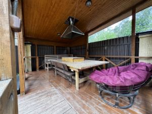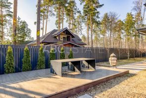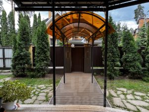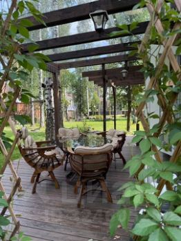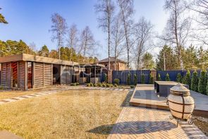 Лот 99941. Эксклюзив Vesco Realty. Коттеджный поселок ''Зеленый бор''Совершенно новый дом в стиле альпийского шале из премиального клееного бруса площадью 521 кв.м с полной отделкой, меблировкой и декором всего в 12 км от МКАД по Ярославскому шоссе в элитном поселке ''Зеленый бор''. Идеально подходит как для постоянного, так и для сезонного проживания. Исполнен в концепции жить здесь и сейчас: для тех, кто не готов тратить несколько лет на строительство и обустройство. Аналогов многим применяемым материалам и оборудованию больше нет в России. Особенности: новый дом, премиальные материалы и бренды, готовность под тапочки, высокие потолки (1 этаж 3,7 м, 2 этаж 4,2 м в коньке), закрытая панорамным остеклением веранда, дровяной камин в гостиной и печь у барбекю, отдельное строение с гаражом и полноценным гостевым блоком.ПЛАНИРОВКА1 этаж: прихожая с просторной гардеробной (17,5 кв.м), кухня-столовая-гостиная (66,2) с выходом на остекленную веранду (50,6), спальня (15,1) с собственным выходом на крыльцо (48,1), кабинет (18,6) с выходом на крыльцо (16,4), гостевой с/у (6,9), постирочная (6,1) с кладовой для хранения вещей (6), котельная (6), лестница-библиотека (13,7), коридор (13,3). 2 этаж: мастер-спальня с выходом на балкон (35,6) с гардеробной (14,1) и ванной комнатой (6,9), две симметричные детские (по 28,8) с выходом на общий балкон (53,2), ванная комната (4,6) и с/у (2,3), гардероб (6,6), коридор (11,8). В отдельно стоящем доме расположены: на первом этаже - гараж на 2 м/м (41,7), на втором этаже - полноценный гостевой блок, состоящий из гостиной (21,6), спальни (11,1) с гардеробом (2,8), с/у (3,9).Разработан проект дома на дереве.МАТЕРИАЛЫ и БРЕНДЫСтены - премиальный клееный брус Holz 25*25, черепица Braas, масло Osmo, большое деревянное остекление Holzen c профилем 94 мм.Мебель - премиальные зарубежные бренды и эксклюзивы ручной работы производства Италии, Германии, Австрии, Дании и России: Timothy Oulton, Riva 1920, Bo Concept, Porada, Ironclad Vintage Industrial, Moonzana. Сантехника - Hansgrohe, Laufen, Grohe.Двери - массив дуба Belorawood.Радиаторы - Carron Daisy.Кухня индивидуального исполнения из массива дуба, столешницы из кварца, бытовая техника из Германии.Текстильные изделия и постельное белье индивидуального исполнения, индийские шелковые ковры ручной работы.Уличная мебель 4SIS. ИНЖЕНЕРИЯ и КОММУНИКАЦИИВсе действующие центральные коммуникации: магистральный газ, электричество 30 кВт, водопровод, канализация.WiFi во всех строениях и на участке, видеонаблюдение, охранная и пожарная сигнализация Гольфстрим. УЧАСТОКПравильной прямоугольной формы ровный лесной участок 15 соток в глубине поселка. Модно оформлено место открытого огня и открытого джакузи в соснах. На участке газон, вечерняя подсветка, высажены туи. Капитальное ограждение по периметру, автоматические ворота, дорожки брусчаткой выложены, обустроена парковка для автомобилей. ПОСЕЛОКЗеленый бор - элитный и давно обжитой поселок, расположен в окружении корабельных сосен всего в 12 км от МКАД и в пешей доступности от ж/д станции. На охраняемой территории поселка благоустроены детская и спортивная площадка, места для прогулок и отдыха.В шаговой доступности продуктовые магазины и детсад, в 2 км - инфраструктура пос. Ивантеевка, в 5-6 км - крупные города Королев и Пушкино. В 15 км - Тишкинское водохранилище.Рядом расположены коттеджные посёлки: ''Зеленый бор'', ''Сосновый Бор'', ''Звягино''Участник AREA - Ассоциации Агентств Элитной Недвижимости
