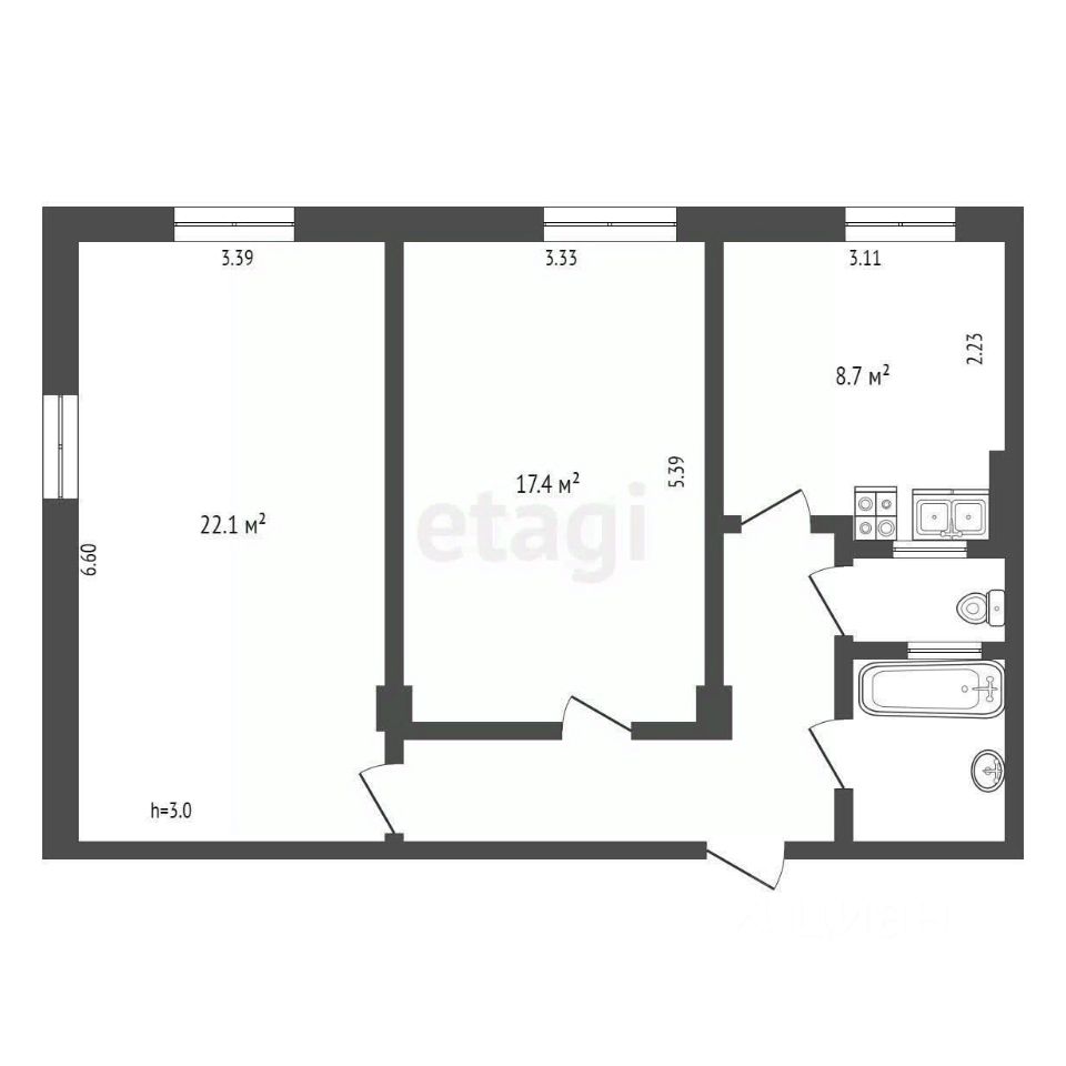 33 м² · Этаж 14 из 17