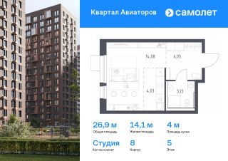Предлагается квартира студия комфорт-класса 22,28 кв.м в корпусе 2 на 3 этаже, в ЖК ''Квартал Авиаторов''Квартира без отделки. Доступность опции ''отделка'' и возможность комплектации мебелью и декором уточняйте у застройщика.Приобрести квартиру возможно по специальным акциям от застройщика, с текущими условиями акций можно ознакомиться в блоке ''Акций''.Цена динамическая и может отличаться, уточняйте актуальность у застройщика.''Квартал Авиаторов'' — жилой комплекс комфорт-класса, расположенный в 2 км от железнодорожной станции Балашиха (5 минут на автомобиле, 30 минут пешком). Поблизости — Горенский лесопарк и заповедник ''Лосиный остров''. В проекте предусмотрены закрытые дворы с детскими и спортивными площадками, безбарьерная среда.