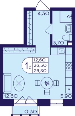 Номер в базе: 765783. Дом построен, выдаются ключи!!!!!! Студия 26,4 квадратных метров расположена на 17-м этаже нового жилого дома и предлагает завораживающий вид на город. Квартира без ремонта, что обеспечивает комфорт в создание собственного индивидуального проекта для будущих жильцов.Квартира имеет эргономичную планировку, включающую просторную зону гостиной, совмещенную с кухонной зоной.Санузел совмещенный, но достаточно вместительный, чтобы разместить все необходимые сантехнические приборы и стиральную машину.В квартире установлены металлопластиковые окна, обеспечивающие отличную шумоизоляцию. Балкона не предусмотрено, однако благодаря высокому расположению на 17 этаже открывается прекрасный вид на окрестности, от которого захватывает дух.Дом, построен по современным технологиям и оснащен всеми необходимыми коммуникациями. Два бесшумных лифта (грузовой и пассажирский) обеспечивают комфортное перемещение по зданию. Во дворе дома обустроена детская площадка, зона для отдыха и наземная парковка.Инфраструктура района развита на высоком уровне: в шаговой доступности находятся магазины, аптеки, кафе, рестораны, школы и детские сады. Один собственник!