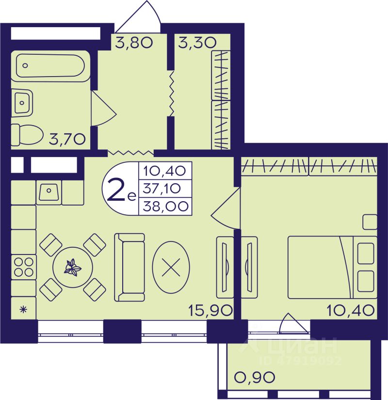 38 м² · Этаж 5 из 17