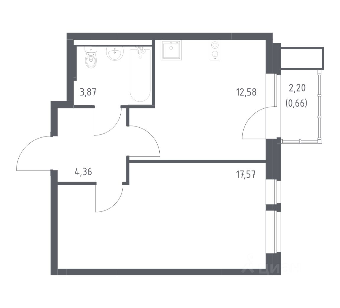 1-к, Квартал Авиаторов ЖК, 7