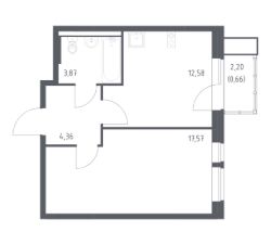 В продаже 1-комнатная квартира в корпусе 3 ЖК 'Квартал Авиаторов'. Квартира располагается на 7 этаже, общая площадь 39.04 м2.