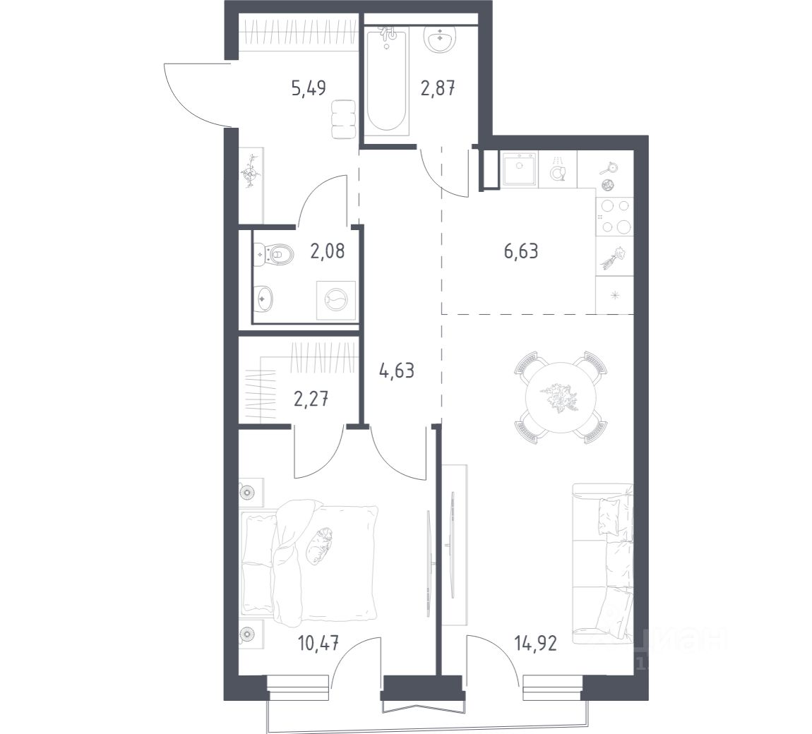 1-к, Квартал Авиаторов ЖК, 2