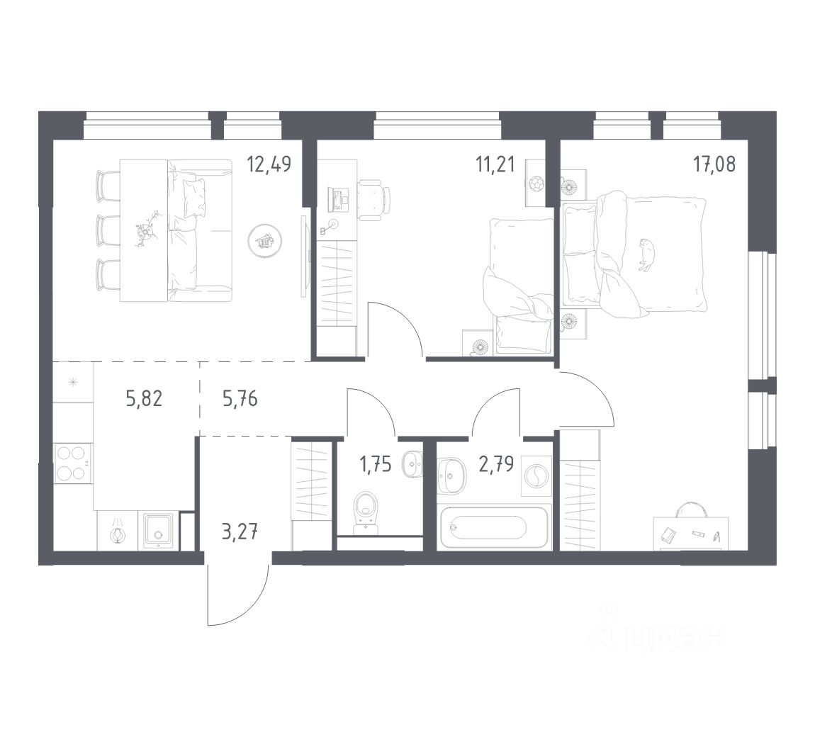 Строим кварталы для жизни с заботой о будущем. Предлагается 2-комнатная квартира комфорт-класса площадью 60,17 кв.м в корпусе 7 на 13-м этаже, в жилом комплексе ''Квартал Авиаторов''. Квартиры комплекса — на выбор: могут быть как с отделкой, так и без. В случае с готовой отделкой в комнатах и прихожей уже будут обои, натяжные потолки и ламинат, а в санузлах — керамогранит на полу и керамическая плитка на стенах. Мы подведем все коммуникации и установим сантехнику. Помимо базовой отделки, вы можете дополнительно выбрать улучшенную версию. В ней используются износостойкие материалы, ударопрочные плинтуса, ламинат с фаской — все для долговечного использования. Приобрести квартиру возможно по специальным акциям от застройщика, с текущими условиями акций можно ознакомиться в блоке ''Акций''. Цена динамическая и может отличаться, уточняйте актуальность у застройщика. ''Квартал Авиаторов'' — жилой комплекс комфорт-класса, расположенный в 2 км от железнодорожной станции Балашиха (5 минут на автомобиле, 30 минут пешком). Поблизости — Горенский лесопарк и заповедник ''Лосиный остров''. В проекте предусмотрены закрытые дворы с детскими и спортивными площадками, безбарьерная среда.