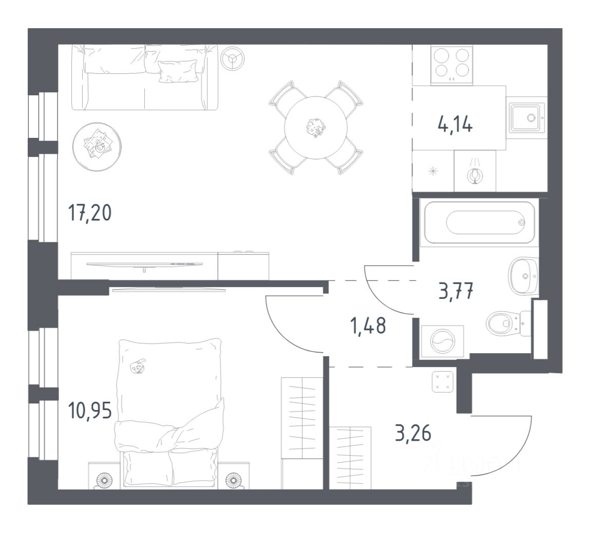 44 м² · Этаж 10 из 17