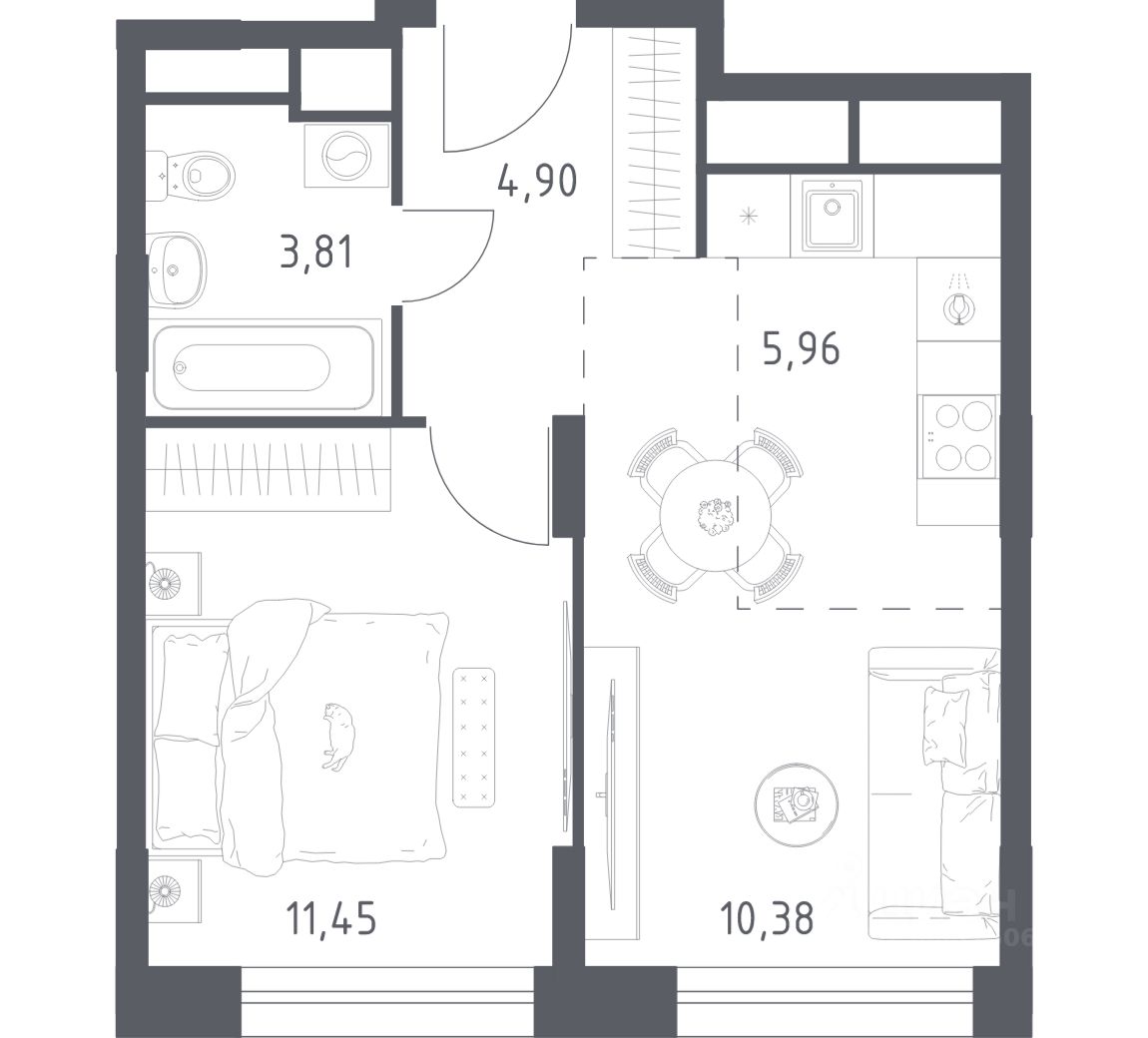 1-к, Квартал Авиаторов ЖК, 4