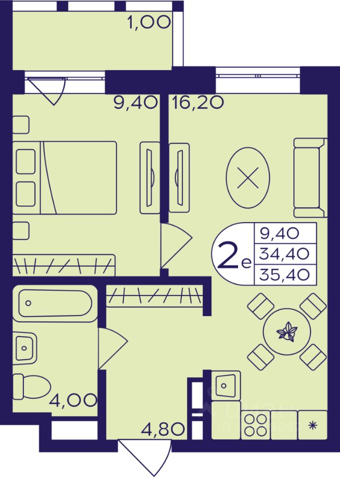 35 м² · Этаж 14 из 17
