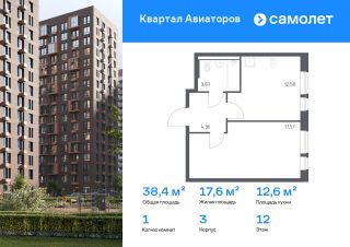 Строим кварталы для жизни с заботой о будущем. Предлагается 1-комнатная квартира комфорт-класса 38,38 кв.м в корпусе 3 на 12 этаже, в ЖК ''Квартал Авиаторов''Квартира с чистовой отделкой. Доступность дополнительных опций уточняйте у застройщика.Приобрести квартиру возможно по специальным акциям от застройщика, с текущими условиями акций можно ознакомиться в блоке ''Акций''.Цена динамическая и может отличаться, уточняйте актуальность у застройщика.''Квартал Авиаторов'' — жилой комплекс комфорт-класса, расположенный в 2 км от железнодорожной станции Балашиха (5 минут на автомобиле, 30 минут пешком). Поблизости — Горенский лесопарк и заповедник ''Лосиный остров''. В проекте предусмотрены закрытые дворы с детскими и спортивными площадками, безбарьерная среда.