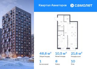 Строим кварталы для жизни с заботой о будущем. Предлагается 1-комнатная квартира комфорт-класса 48,6 кв.м в корпусе 8 на 10 этаже, в ЖК ''Квартал Авиаторов''Квартира с чистовой отделкой. Доступность дополнительных опций уточняйте у застройщика.Приобрести квартиру возможно по специальным акциям от застройщика, с текущими условиями акций можно ознакомиться в блоке ''Акций''.Цена динамическая и может отличаться, уточняйте актуальность у застройщика.''Квартал Авиаторов'' — жилой комплекс комфорт-класса, расположенный в 2 км от железнодорожной станции Балашиха (5 минут на автомобиле, 30 минут пешком). Поблизости — Горенский лесопарк и заповедник ''Лосиный остров''. В проекте предусмотрены закрытые дворы с детскими и спортивными площадками, безбарьерная среда.