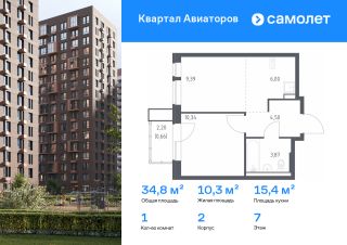 Строим кварталы для жизни с заботой о будущем. Предлагается 1-комнатная квартира комфорт-класса 34,63 кв.м в корпусе 2 на 12 этаже, в ЖК ''Квартал Авиаторов''Квартира с предчистовой отделкой. Доступность дополнительных опций уточняйте у застройщика.Приобрести квартиру возможно по специальным акциям от застройщика, с текущими условиями акций можно ознакомиться в блоке ''Акций''.Цена динамическая и может отличаться, уточняйте актуальность у застройщика.''Квартал Авиаторов'' — жилой комплекс комфорт-класса, расположенный в 2 км от железнодорожной станции Балашиха (5 минут на автомобиле, 30 минут пешком). Поблизости — Горенский лесопарк и заповедник ''Лосиный остров''. В проекте предусмотрены закрытые дворы с детскими и спортивными площадками, безбарьерная среда.