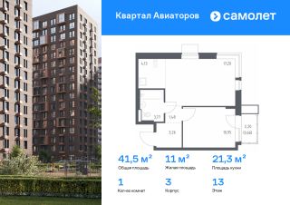 Строим кварталы для жизни с заботой о будущем. Предлагается 1-комнатная квартира комфорт-класса 41,45 кв.м в корпусе 3 на 3 этаже, в ЖК ''Квартал Авиаторов''Квартира с предчистовой отделкой. Доступность дополнительных опций уточняйте у застройщика.Приобрести квартиру возможно по специальным акциям от застройщика, с текущими условиями акций можно ознакомиться в блоке ''Акций''.Цена динамическая и может отличаться, уточняйте актуальность у застройщика.''Квартал Авиаторов'' — жилой комплекс комфорт-класса, расположенный в 2 км от железнодорожной станции Балашиха (5 минут на автомобиле, 30 минут пешком). Поблизости — Горенский лесопарк и заповедник ''Лосиный остров''. В проекте предусмотрены закрытые дворы с детскими и спортивными площадками, безбарьерная среда.