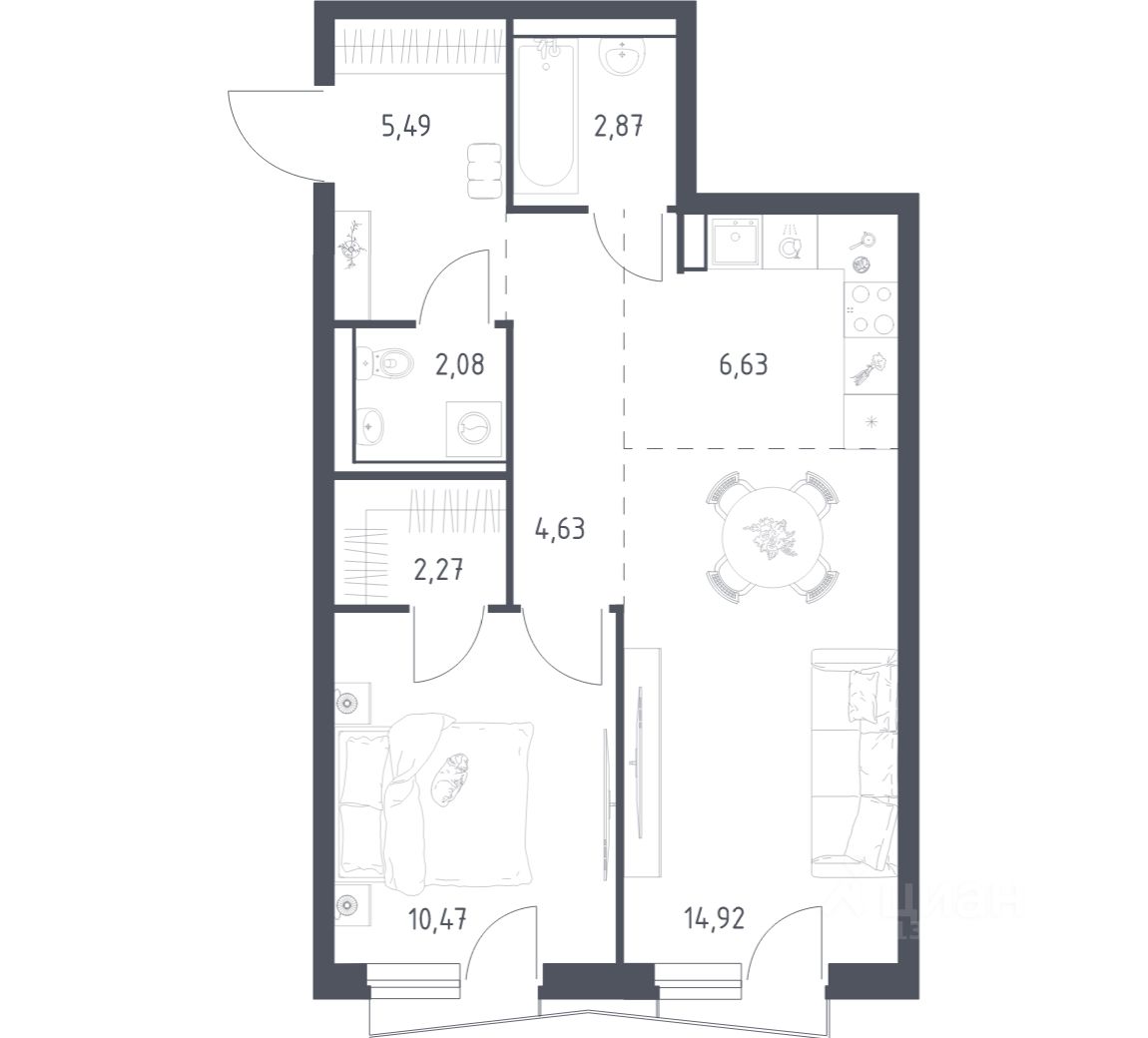 47 м² · Этаж 17 из 24