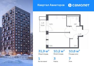 Строим кварталы для жизни с заботой о будущем. Предлагается 1-комнатная квартира комфорт-класса 31,86 кв.м в корпусе 3 на 7 этаже, в ЖК ''Квартал Авиаторов''Квартира с предчистовой отделкой. Доступность дополнительных опций уточняйте у застройщика.Приобрести квартиру возможно по специальным акциям от застройщика, с текущими условиями акций можно ознакомиться в блоке ''Акций''.Цена динамическая и может отличаться, уточняйте актуальность у застройщика.''Квартал Авиаторов'' — жилой комплекс комфорт-класса, расположенный в 2 км от железнодорожной станции Балашиха (5 минут на автомобиле, 30 минут пешком). Поблизости — Горенский лесопарк и заповедник ''Лосиный остров''. В проекте предусмотрены закрытые дворы с детскими и спортивными площадками, безбарьерная среда.