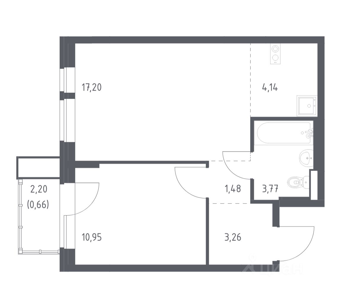 1-к, Квартал Авиаторов ЖК, 2