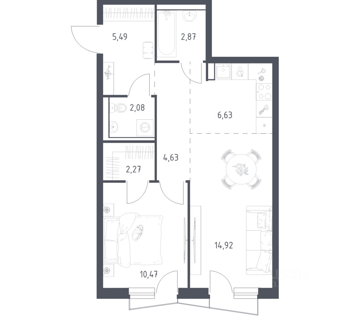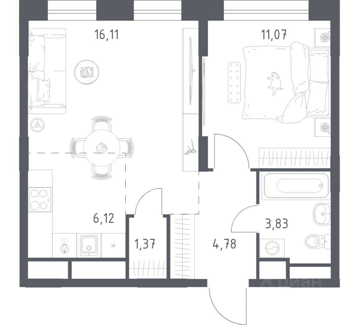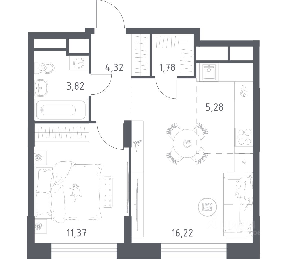 42 м² · Этаж 7 из 22