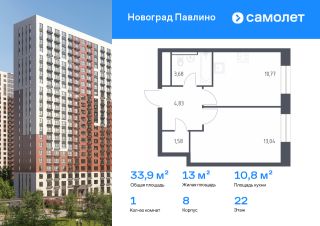 Строим кварталы для жизни с заботой о будущем. Предлагается 1-комнатная квартира комфорт-класса 35,6 кв.м в корпусе 8 на 19 этаже, в ЖК ''Новоград Павлино''Квартира с чистовой отделкой. Доступность дополнительных опций уточняйте у застройщика.Приобрести квартиру возможно по специальным акциям от застройщика, с текущими условиями акций можно ознакомиться в блоке ''Акций''.Цена динамическая и может отличаться, уточняйте актуальность у застройщика.''Новоград Павлино'' находится в 13 км от МКАД рядом с рекой Пехорка и в окружении трех лесопарков - Павлинского, Салтыковского и Ольгинского. Современные монолитно-кирпичные дома с широким выбором квартир. В жилом комплексе представлены разные планировки европейского формата с высотой потолков 2,8 м.