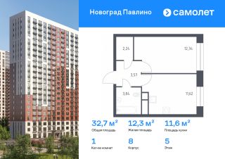 Строим кварталы для жизни с заботой о будущем. Предлагается 1-комнатная квартира комфорт-класса 32,6 кв.м в корпусе 8 на 15 этаже, в ЖК ''Новоград Павлино''Квартира с чистовой отделкой. Доступность дополнительных опций уточняйте у застройщика.Приобрести квартиру возможно по специальным акциям от застройщика, с текущими условиями акций можно ознакомиться в блоке ''Акций''.Цена динамическая и может отличаться, уточняйте актуальность у застройщика.''Новоград Павлино'' находится в 13 км от МКАД рядом с рекой Пехорка и в окружении трех лесопарков - Павлинского, Салтыковского и Ольгинского. Современные монолитно-кирпичные дома с широким выбором квартир. В жилом комплексе представлены разные планировки европейского формата с высотой потолков 2,8 м.