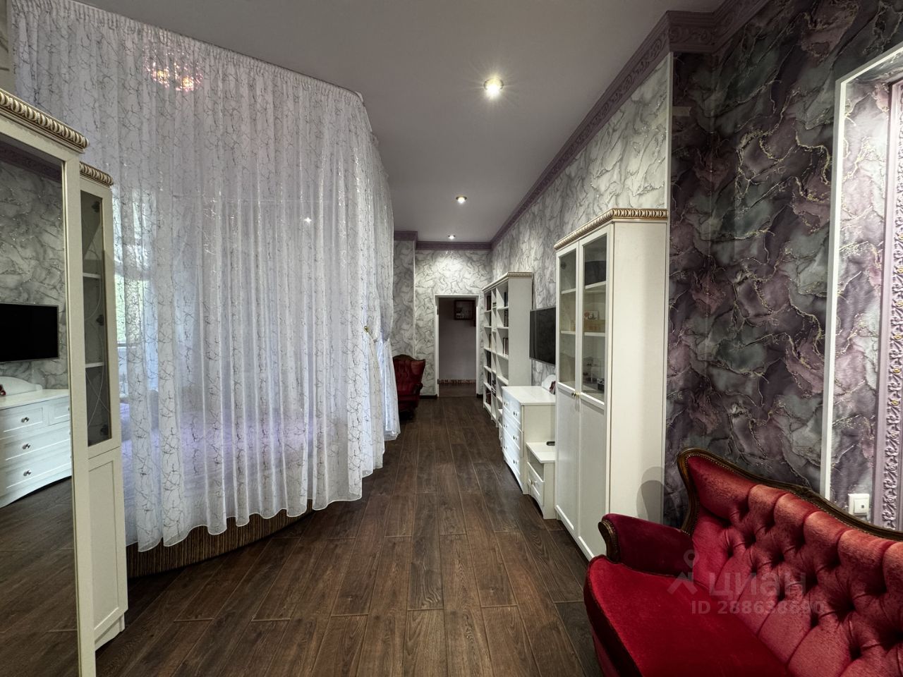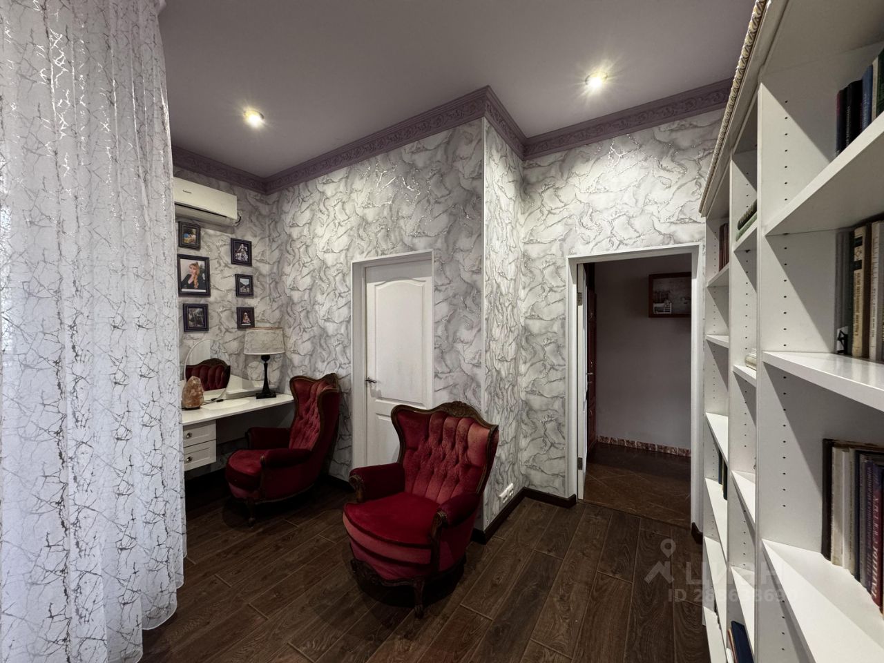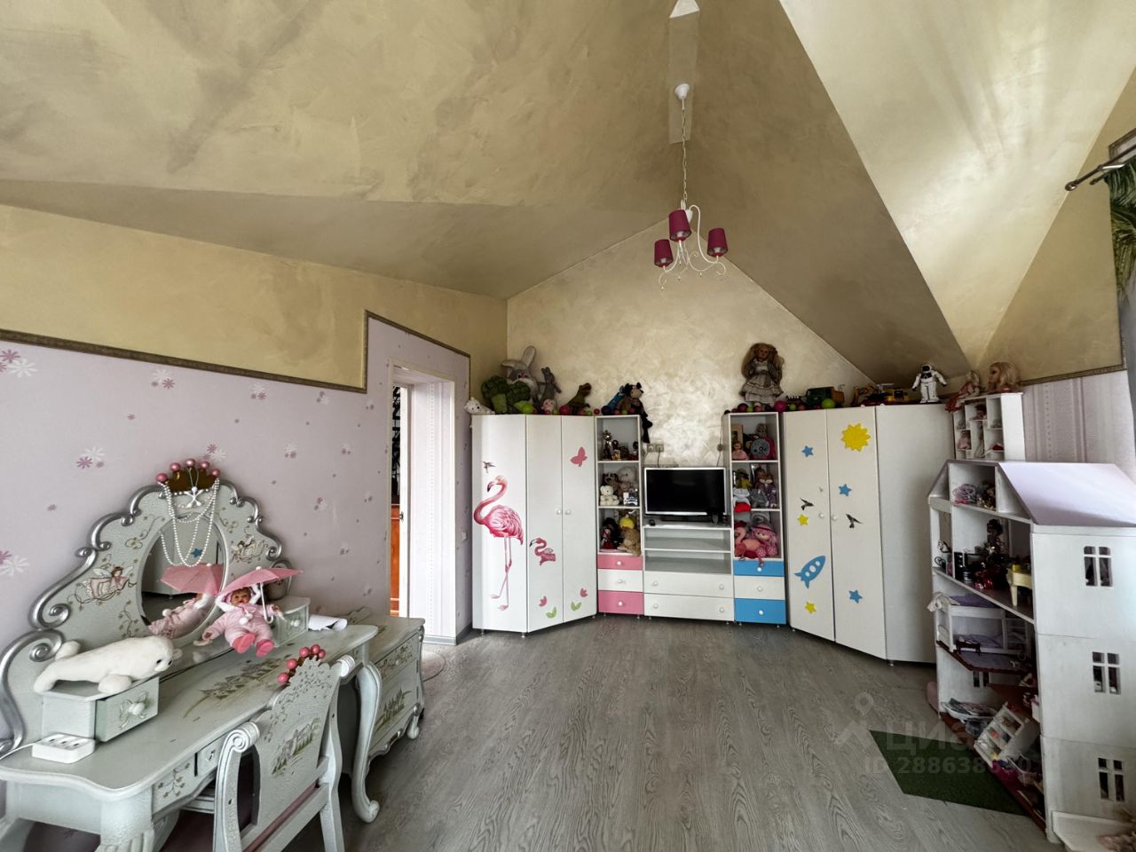 Общая площадь около 500 кв.м. В доме 4 этажа: - на цокольном этаже расположена сауна, винный погреб, домашний кинотеатр, спортзал, кухня с комнатой отдыха, - 1 этаж: просторная прихожая, рабочий кабинет, спальня, кухня, гостиная с камином (потолки 8 метров), отдельный выход на улицу, - 2 этаж: спальня, гардеробная, детская спальня, библиотека, сан. узел с джакузи, балкон - 3 этаж: мансардная спальня, гардеробная, сан. узел, выход на чердак
