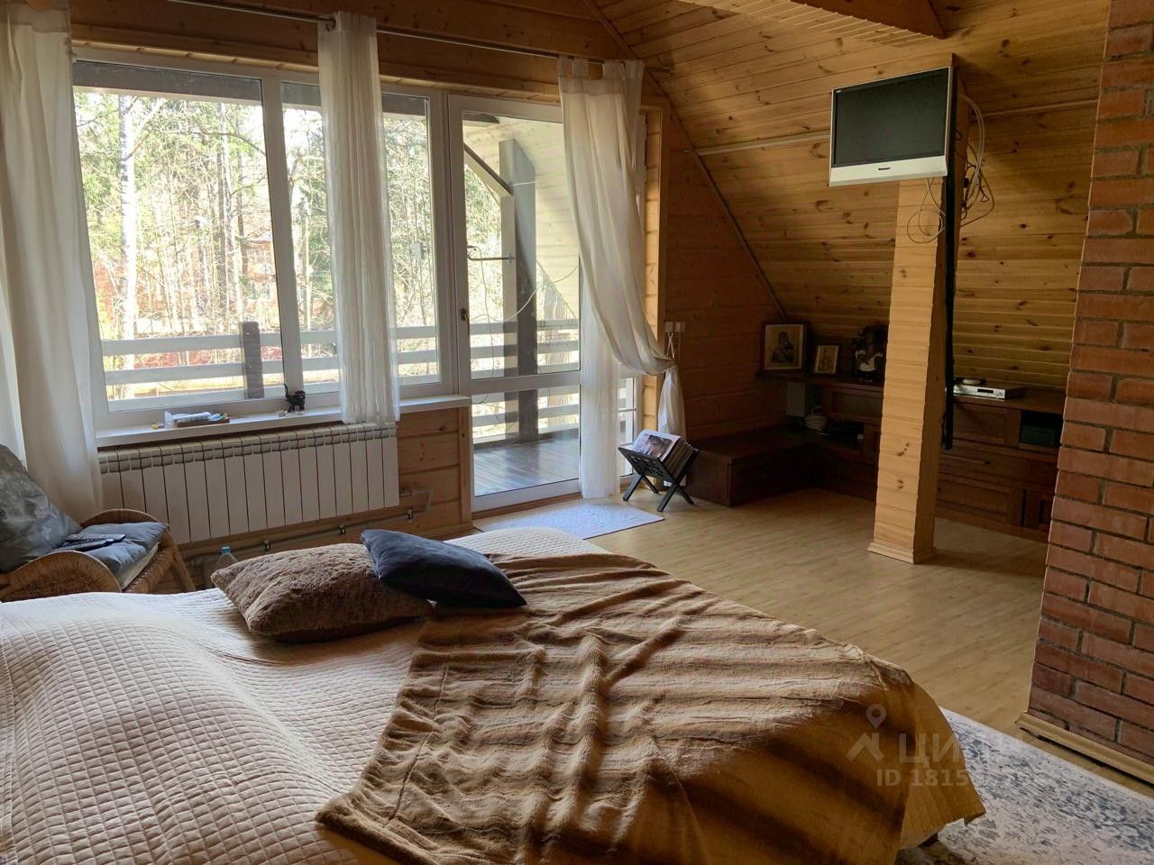 Ярославское шоссе, 60 км от МКАД, дачный пос. Абрамцево (около 4 км от усадьбы ''Абрамцево''). Ж/д станция ''Радонеж'' (55-й км от центра Москвы) находится в 13-15 минутах ходьбы от дачи. Из Москвы электричка идет со станции ''Комсомольская''. Время в пути - от 1 часа до 1 часа 14 минут (в зависимости от расписания). Двухэтажный деревянный дом в стиле ''Финский сруб''. Общая площадь - 122 кв.м Охраняется Вневедомственной охраной города Хотьково, есть кнопка экстренного вызова. Участок - 35 соток со своим лесом. Грибы можно собирать, не выходя за пределы участка. Газ, газовое отопление, электрическое отопление, санузел с душевой кабиной, стиральная машина Electrolux, встроенная кухонная техника Smeg. Вода поступает из собственного колодца. 2 телевизора - в столовой и спальне на 2-м этаже. 1 этаж: веранда, большая комната (диван двуспальный), малая комната (кровать), кухня со столовой зоной, санузел, печка. 2 этаж: спальня с большой лоджией (кровать двуспальный), детская (подростковая, полноценная кровать для взрослого, рабочий стол, шкаф и т.д.) Интернет, НТВ+, Триколор. См. Фото и Видео!