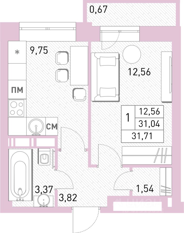 Общая площадь31,1 м2