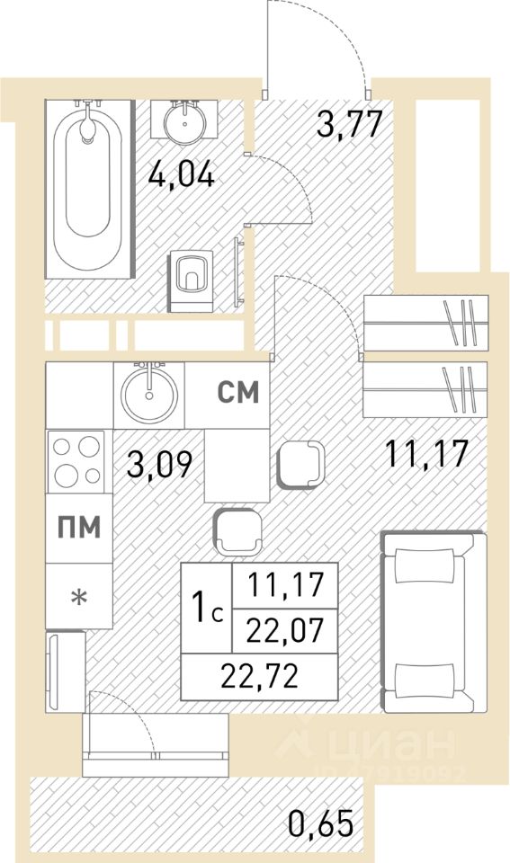 Общая площадь22,4 м2