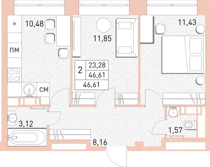 Продаётся 2-комнатная квартира в сданном доме (Север, корпус 23), срок сдачи: IV-кв. 2023, общей площадью 46.61 кв.м., на 4 этаже. Расположение, транспортная доступность Жилой комплекс комфорт-класса ''Столичный'' (бывшее название - ЖК ''Саввино'') строится компанией ''Главстрой'' на участке площадью в 57 га в микрорайоне Саввино Северное города Балашиха (до 2015 года местность относилась к городу Железнодорожный, позднее он был присоединен к Балашихе). Реализуется данный проект в несколько очередей. Транспортная доступность ЖК ''Столичный'' зависит от улиц Калинина, Луговая и Пионерская. Через 2 км. от комплекса есть выезд на Носовихинское шоссе. Также добраться до Москвы удобно и по железной дороге: на электричке до Курского вокзала от ж/д станции Железнодорожная примерно 33 минуты. Инфраструктура В рамках довольно масштабной застройки ЖК ''Столичный'' возведут не только жилые многоэтажки, но и достаточное количество объектов социально-торговой инфраструктуры, в том числе: 2 общеобразовательные школы на 2000 учеников, 3 детсада в общей сложности на 520 мест, 2 физкультурно-оздоровительных комплекса (в одном дополнительно разместится ДЮСШ, в другом - бассейн), 8 многоуровневых паркингов на 5360 авто, 4-х этажный торговый центр с кинотеатром. В первой же очереди ЖК ''Столичный'' запланирован детский сад, рассчитанный на 220 малышей. Территорию комплекса благоустроят, организовав площадки для игровых детских комплексов и различного спортивного снаряжения, места для отдыха взрослых, предусмотрены проектом и гостевые парковки. Кроме того, дворы озеленят, высадив деревья, кустарники и цветники и засеяв газоны. Находится ЖК ''Столичный'' в районе Северное Саввино, который граничит с Железнодорожным районом - бывшим центром города Железнодорожный. В пешей доступности от комплекса расположены 5 детсадов, гимназия, стадион ''Строитель'', две общеобразовательные школы и одна художественная, два торговых центра - ''Солнечный'' и ''Теремок'', клуб ''Шахматная федерация''. Также в окрестностях немало магазинов, аптек, кафе, отделений банков, есть поблизости и парк отдыха. ЖК ''Столичный'' строится поблизости от Пестовского парка, вредных предприятий и свалок в округе нет, поэтому состояние экологии здесь очень благоприятное для проживания. Буквально за 5 минут на машине можно добраться до Саввинских прудов. Надежность застройщика Застройщиком ЖК ''Столичный'' выступает компания ''Главстрой'', входящая сейчас в число наиболее крупных и успешных строительных организаций, работающих в формате ''от застройщика''. В ходе своей деятельности ''Главстрой'' оказывает помощь клиентам в приобретении самой разной недвижимости (от гаражей до квартир и офисов) на наиболее выгодных условиях. Заботясь об улучшении условий кредитования, застройщик расширяет список банков, с которыми заключаются соглашения о предоставлении ипотечных кредитов. За 20 лет своей работы компания реализовала свыше 50 проектов массовой застройки ''под ключ'' в Москве и Подмосковье, возводя не только жилые дома, но и объект