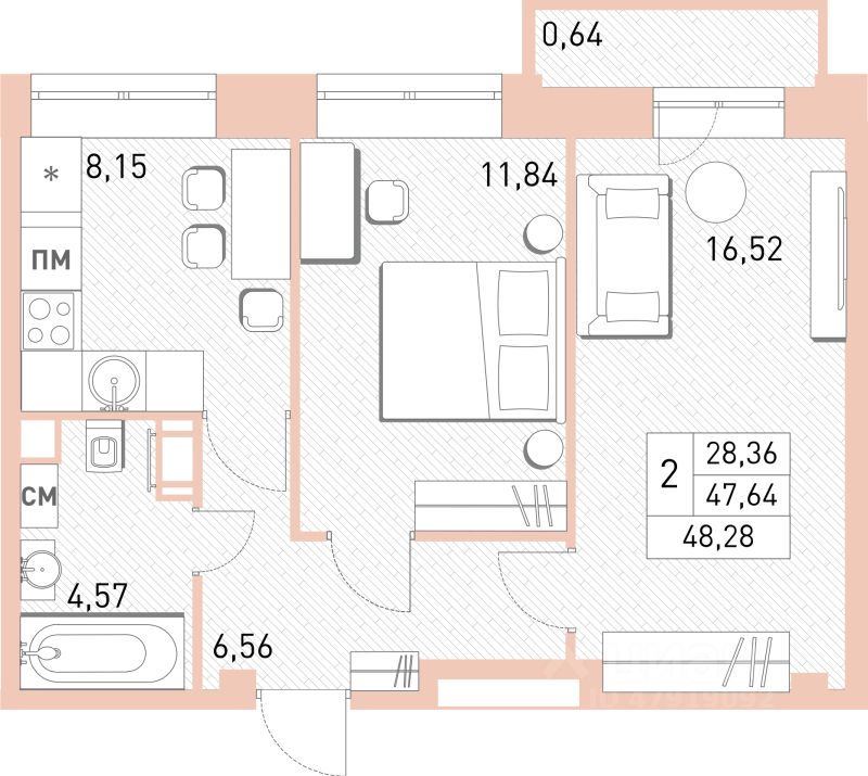 Общая площадь47,8 м2