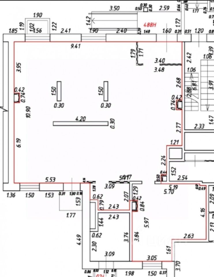 Дополнительная информация: Есть возможность объединить два помещения в одно, увеличить площадь до 295м2.