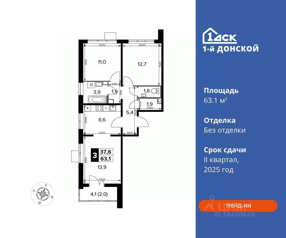 Общая площадь63,1 м2