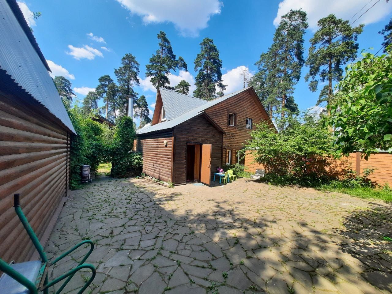 Продается коттедж п. Кратово, ул. Красковская. Площадь 230 кв. м., материал бревно-лиственница, участок ИЖС 9,4 сотки. В доме все коммуникации: вода-скважина, электричество 15 кВт., газ магистральный, септик. В подвале сауна, спортзал, прачечная, котельная. 1-й этаж: кухня-столовая 16 кв. м., гостиная с камином 40.4 кв. м., спальня 9,2 кв. м., холл, с/узел, терраса 29 кв. м., 2-й этаж: 2 спальни по 19 кв. м., хоз. помещение 9,5 кв. м., 2 с/узла, лоджия 28,3 кв. м.. На первом этаже в холле, с/узле пол с подогревом. Фундамент ж/б, крыша металлочерепица. Также на участке есть доля дома 65 кв. м. и большой гараж. В доле дома тоже все коммуникации, если нужны фото доли дома можно по запросу, звоните. Недалеко озеро, лес, магазины, 15 минут пешком от МЦД-3 ст. ''Кратово''.