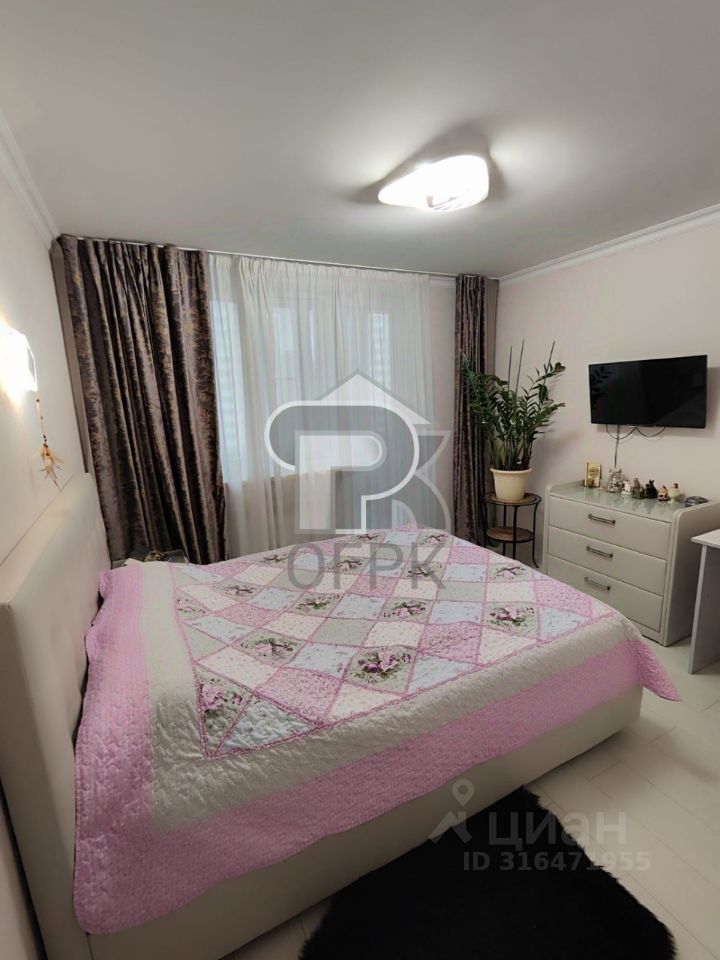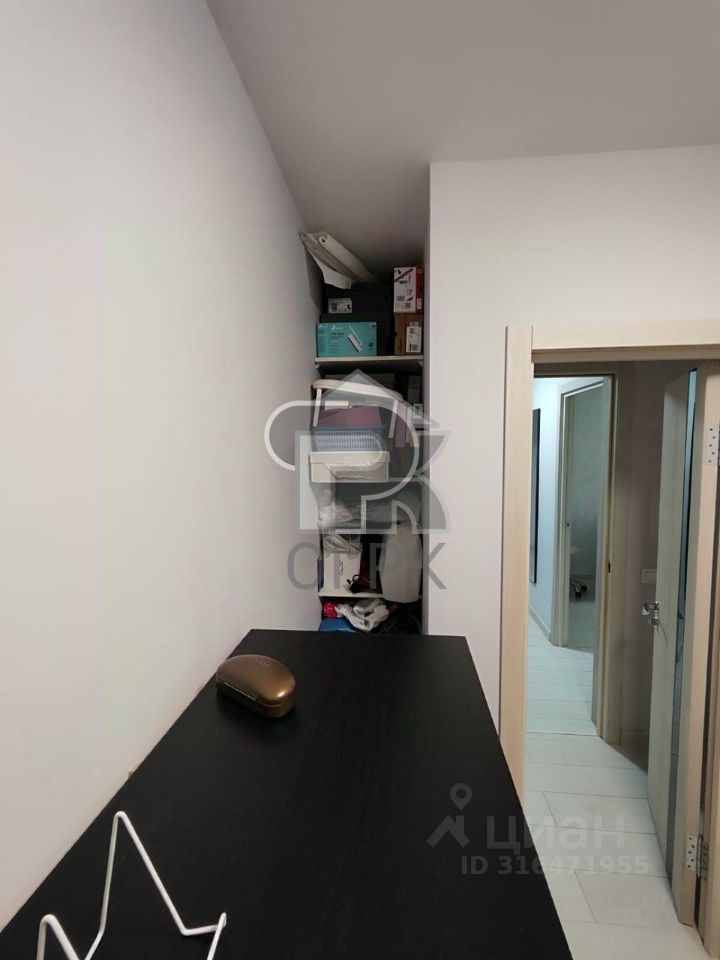 В спальне установлена гардеробная. В коридоре встроенный под потолок шкаф для хозяйственных нужд. На полу ламинат. Окна квартиры выходят на проспект, есть лоджия (пол и стены плитка).