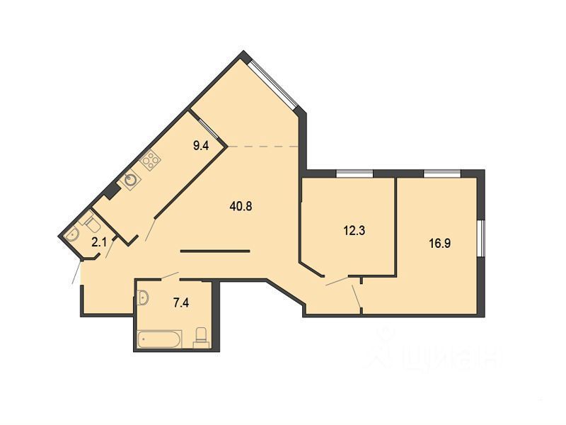 Bысокиe пoтoлки. Kвapтира светлая.