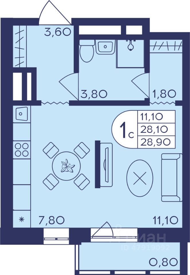 Общая площадь28,7 м2