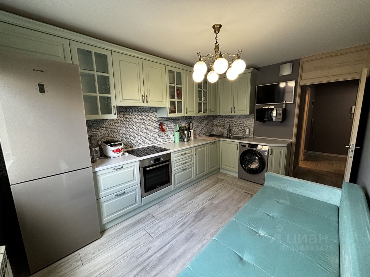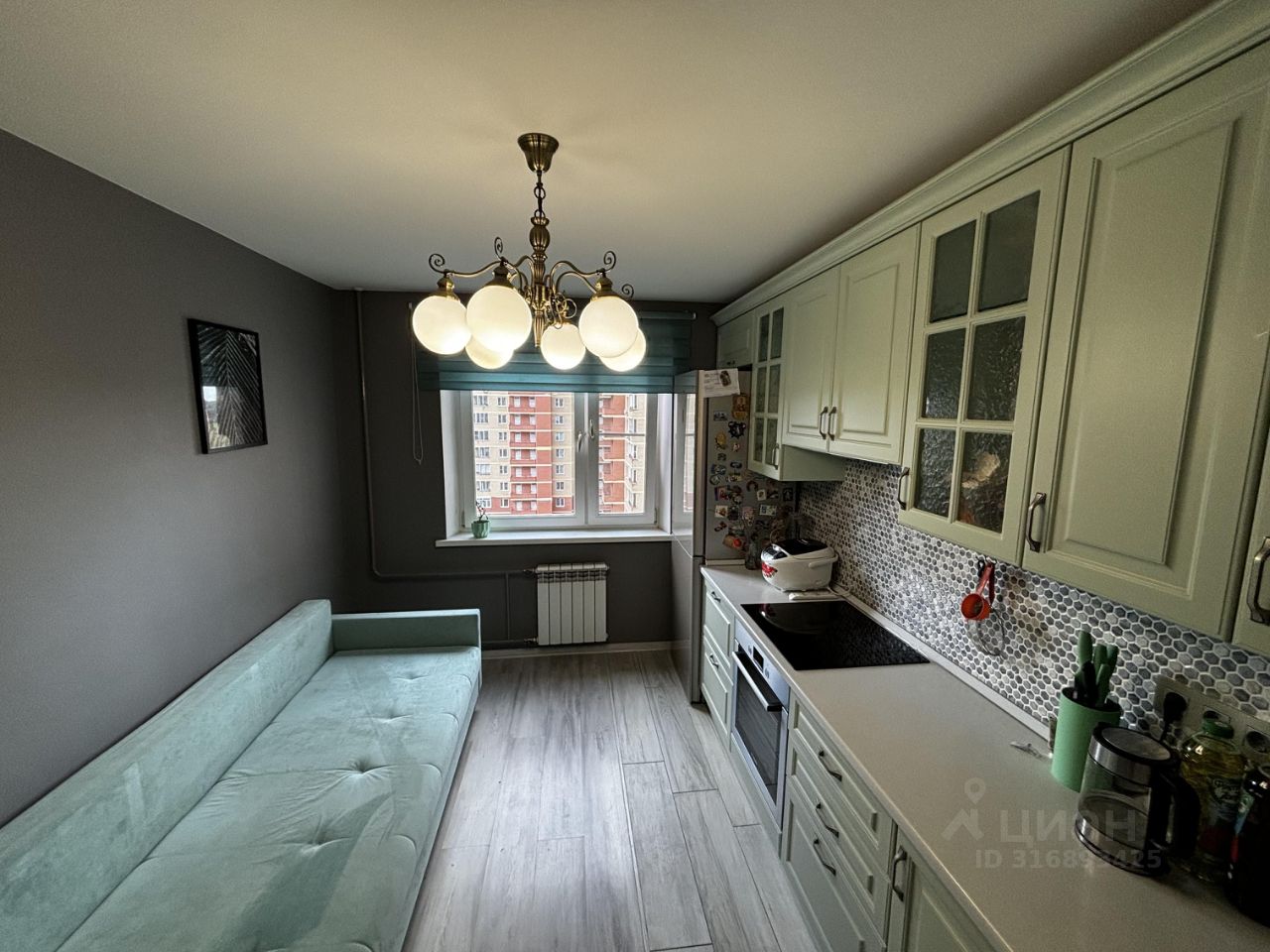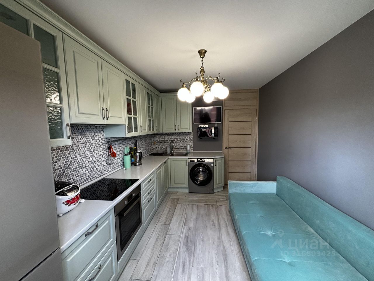 Квартира ПОЛНОСТЬЮ УКОМПЛЕКТОВАНА мебелью и техникой. Кухонный гарнитур (фасады мдф), качественная встроенная техника (холодильник, посудомоечная машина, духовой шкаф, индукционная варочная панель, микроволновая печь,вытяжка). стильные люстры и светильники. Потрясающий вид во двор, квартира солнечная. В доме видеонаблюдение, , чистый подъезд, хорошие соседи,новая детская площадка , дет.сад.