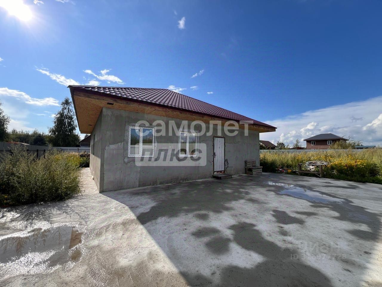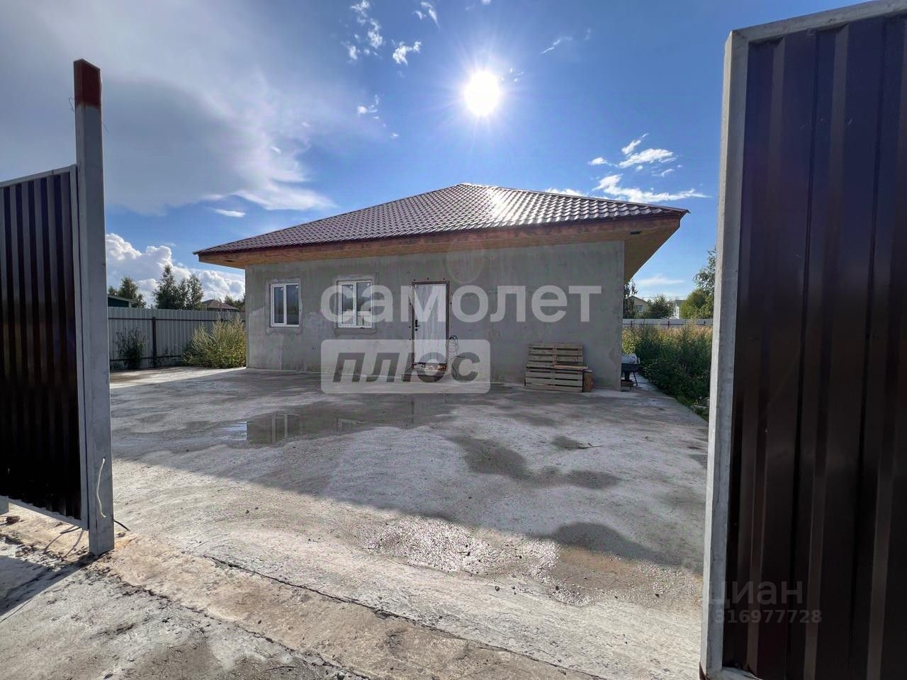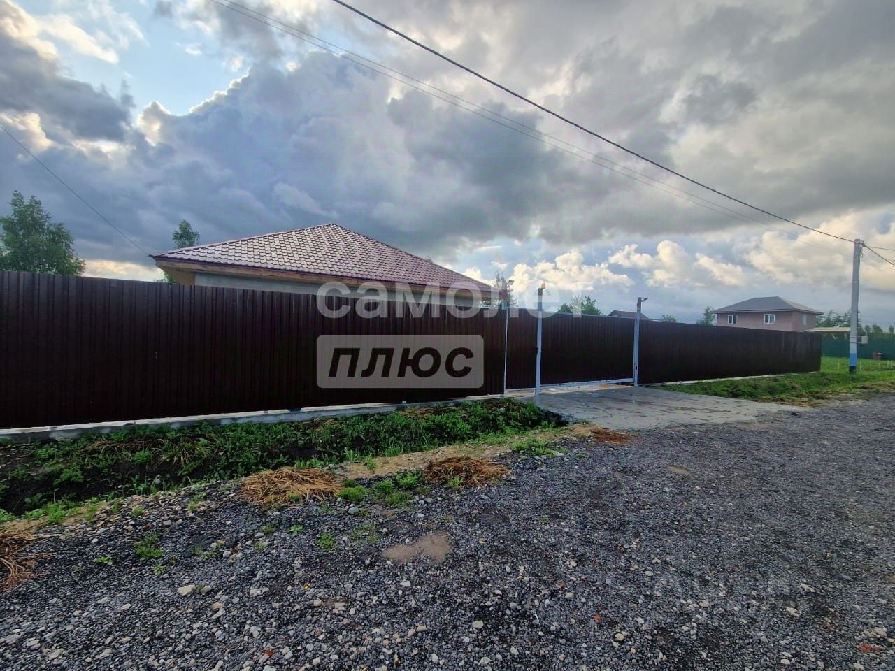 Участок ровный правильной квадратной формы, огорожен забором из проф-настила с откатными воротами. Удобный въезд и парковка у дома забетонированы.