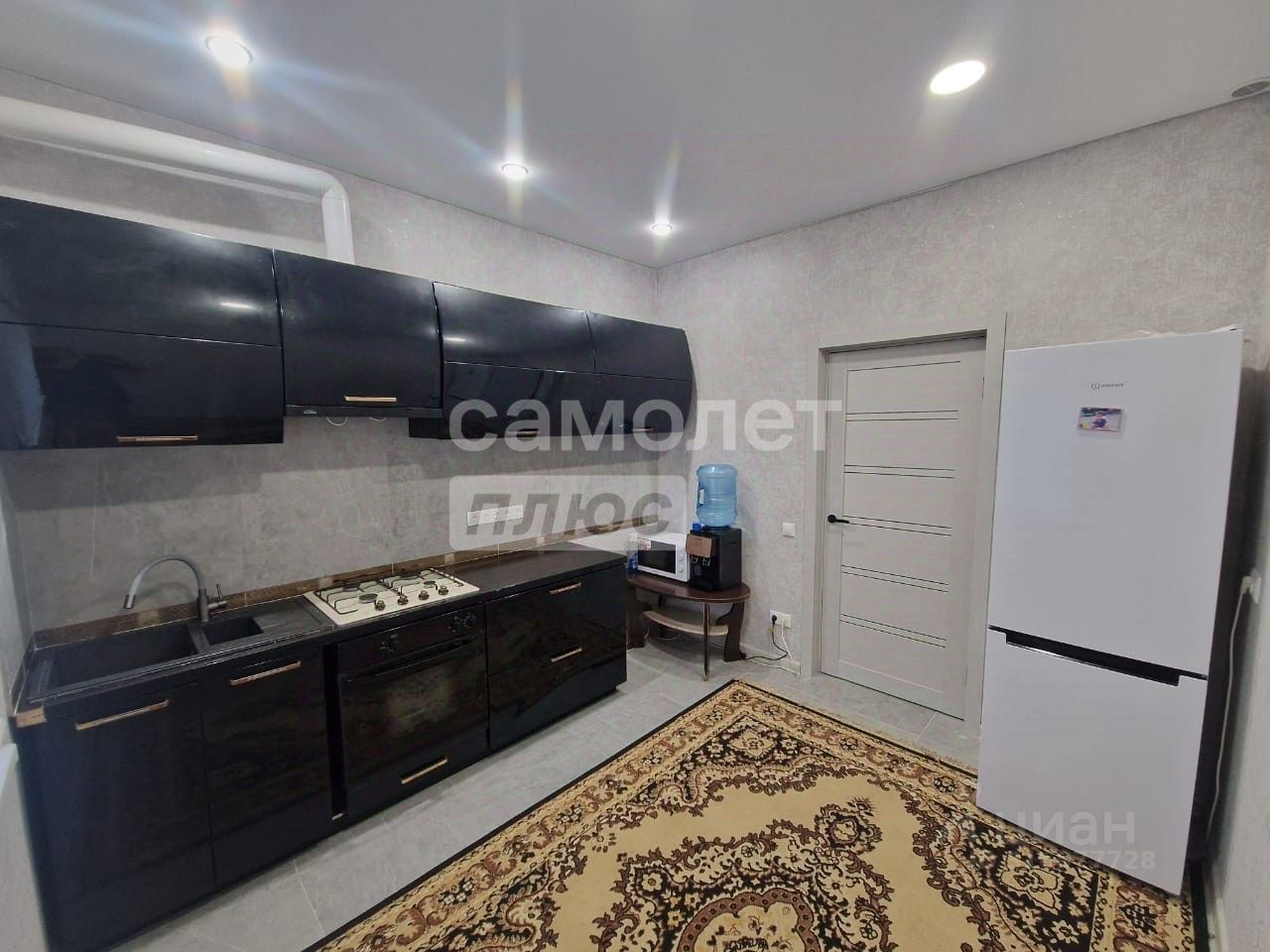 Ремонт: стены во всех комнатах, холе и кухне оштукатурены и оклеены обоями, пол на кухне, стены и пол в сан.узле выложены керамо-гранитом современного дизайна под серый камень, в сан.узле установлена сантехника: унитаз, раковина, душ, на кухне - кухонный гарнитур. Все готово для прожавания!