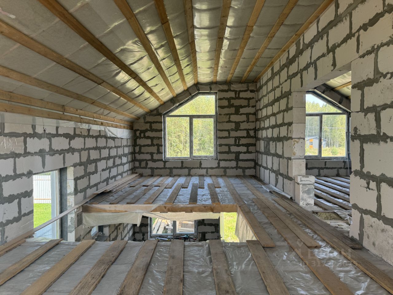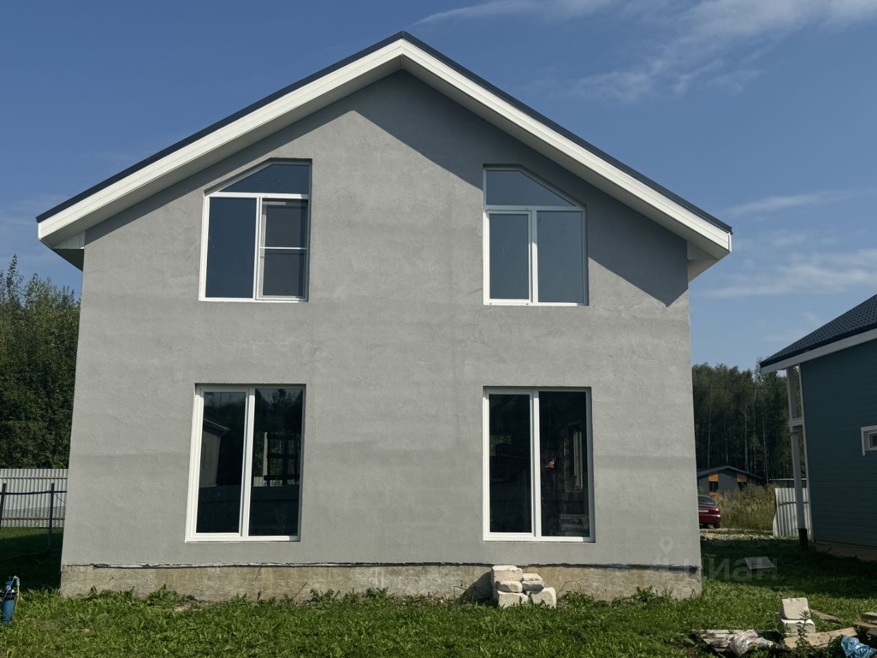 Коттедж : Выполнен из пеноблоков, толщина стен 400 мм ( не каркас и не сибпанели). Фасад и оконные откосы оштукатурены под ключ. Фундамент железобетонный свайно- ростверковый ( монолит). Крыша металлочерепица . Дом пригоден для круглогодичного проживания. Год постройки декабрь 2023 года. У вас есть уникальная возможность отделку полностью сделать под себя. Из окон прекрасный вид на лес.