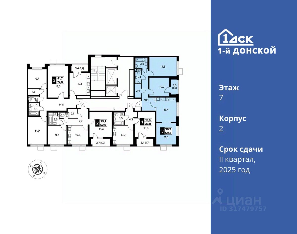 продам 3-к, пр-т-й Донской ЖК, 213 029 786 ₽
