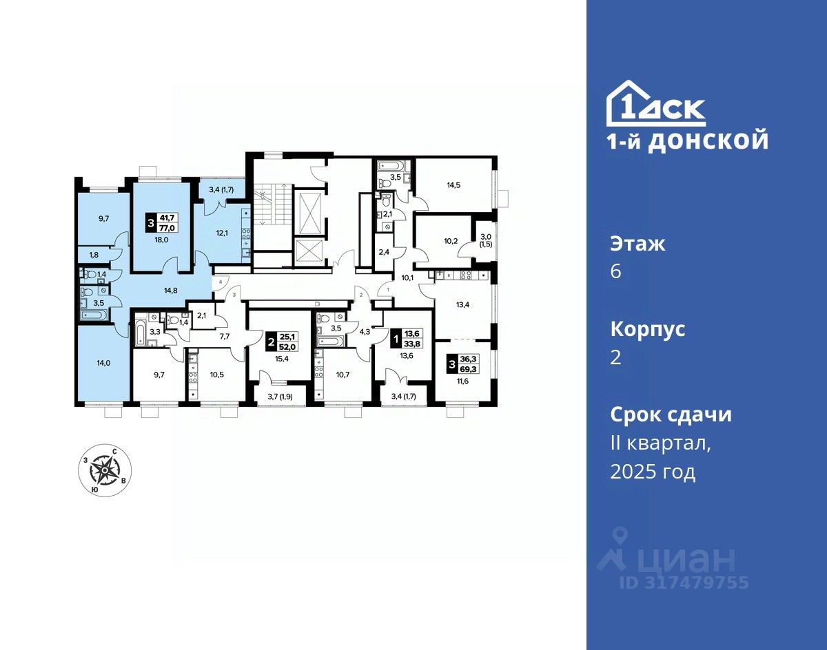продам 3-к, пр-т-й Донской ЖК, 214 707 462 ₽